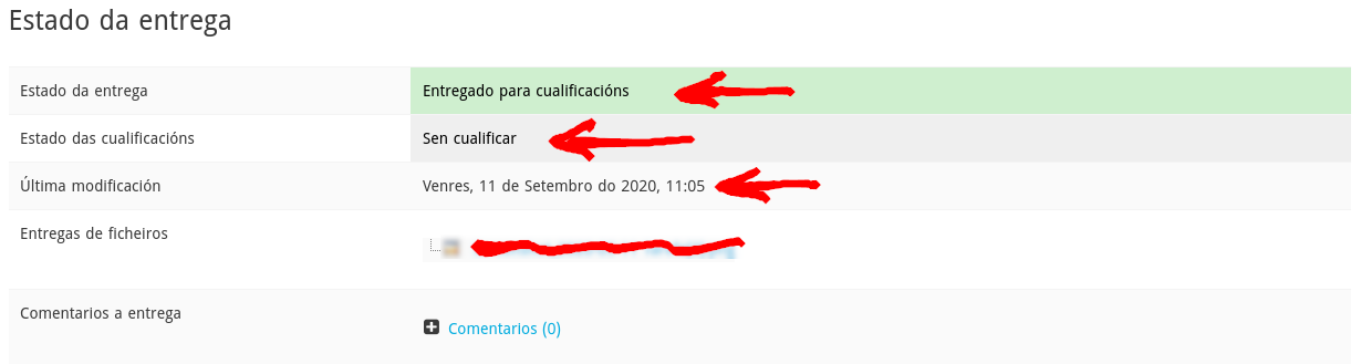 Despois de engadir un ficheiro ou ficheiros, estos aparecerán listados no cadro de entrega de ficheiros.