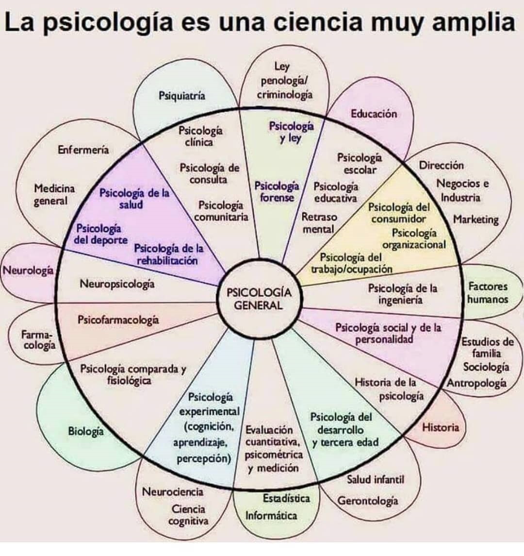 Un diagrama muy sencillo en el que se ven algunas ramas de la psicología y su conexión con otros estudios o especialidades