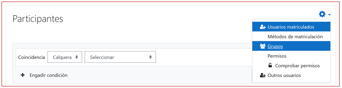 En primeiro lugar, temos que asegurarnos de que NON hai alumnado matriculado. Para iso, imos a PARTICIPANTES: