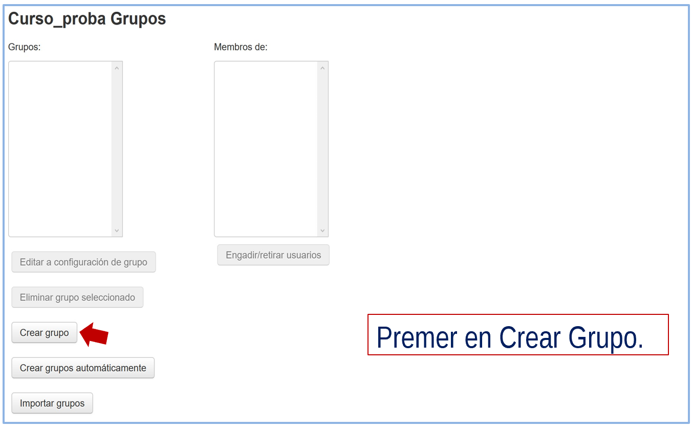 Para crear os grupos, unha vez matriculado ao alumnado, imos a GRUPOS: