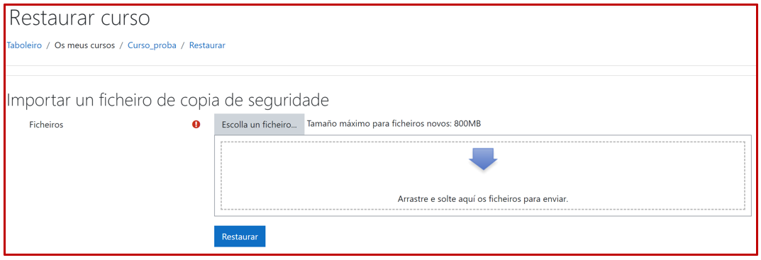 Para poder restaurar un ficheiro de copia de seguridade, este arquivo debe estar subido á aula virtual.