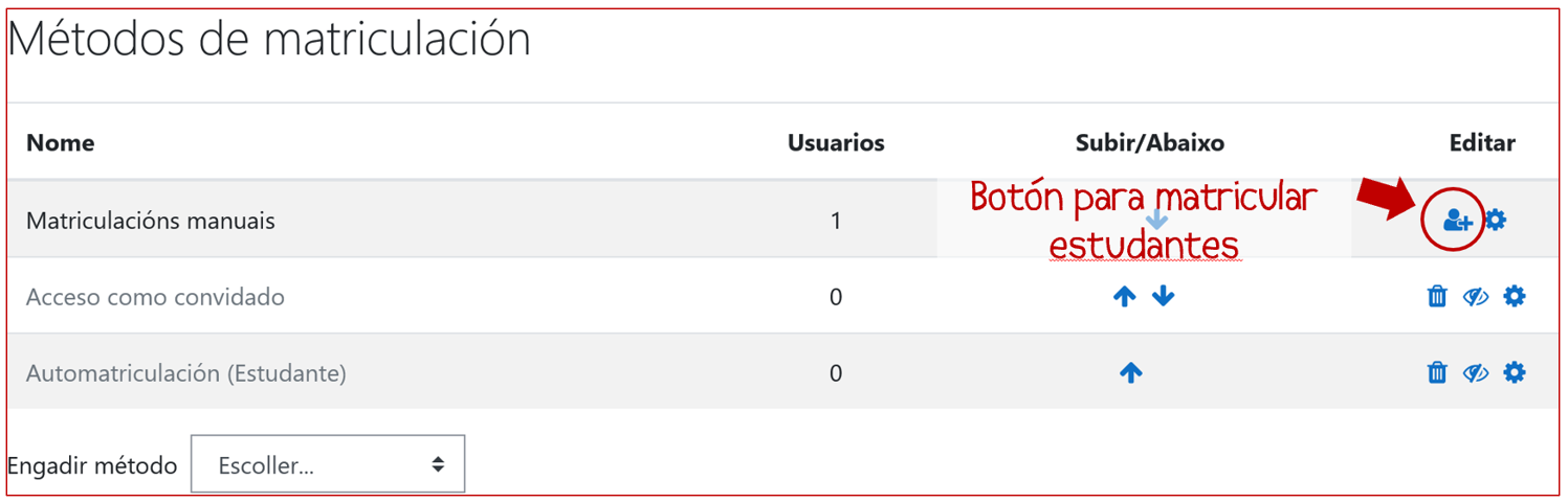 En MATRICULACION MANUAL hai un botón para MATRICULAR USUARIOS: