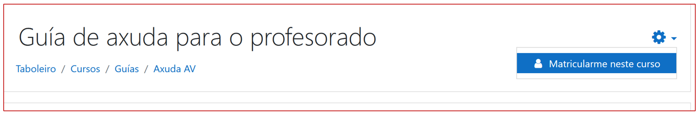 Haberá que informar ao alumnado sobre como automatricularse. Teñen que ir á roda dentada de arriba á dereita e aparece MATRICULARME NESTE CURSO.