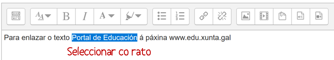 No editor de texto do curso: resaltar o texto (ou a imaxe) que se desexa vincular.