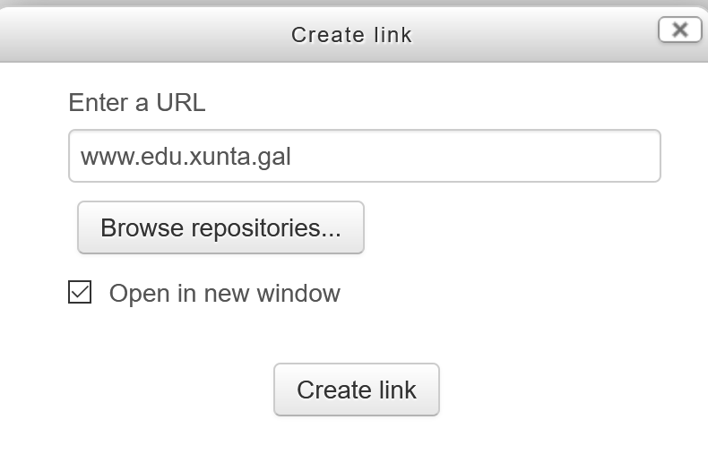 - Aparece unha ventá. Pegar a URL copiada: