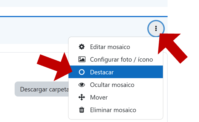 Unha opción que é moi útil é DESTACAR o tema no que se está traballando. Atópase no icono de edición da sección: