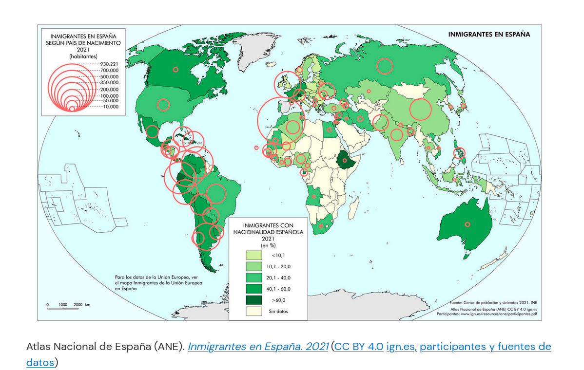 En relación cos inmigrantes que veñen a España dende outras partes do mundo, tomando como referencia datos do 2021, por continentes podemos sinalar que América atopábase no primeiro lugar do ranking, pero se atendemos á procedencia por país, destacaría con diferenza Marrocos. Seguíalle en importancia Romanía (a súa colonia foi durante varios anos a máis numerosa) e, a continuación, países de Suramérica como Colombia, Ecuador, Venezuela e Arxentina (segundo datos do INE, en 2022 o número de persoas estranxeiras procedentes de Colombia superou ao de Romanía).