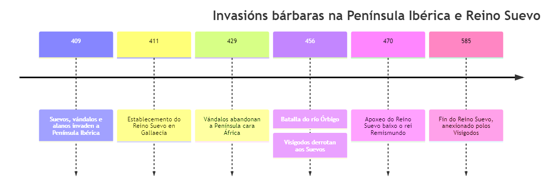Como podes ver, recolle os feitos dun período relativamente breve: son soamente uns 200 anos! Porén, dende a fin do Reino Suevo ata hoxe pasaron case 1500 anos. Nese período inventouse a imprenta, construíronse catedrais, chegouse a América, o ser humano pisou a Lúa...