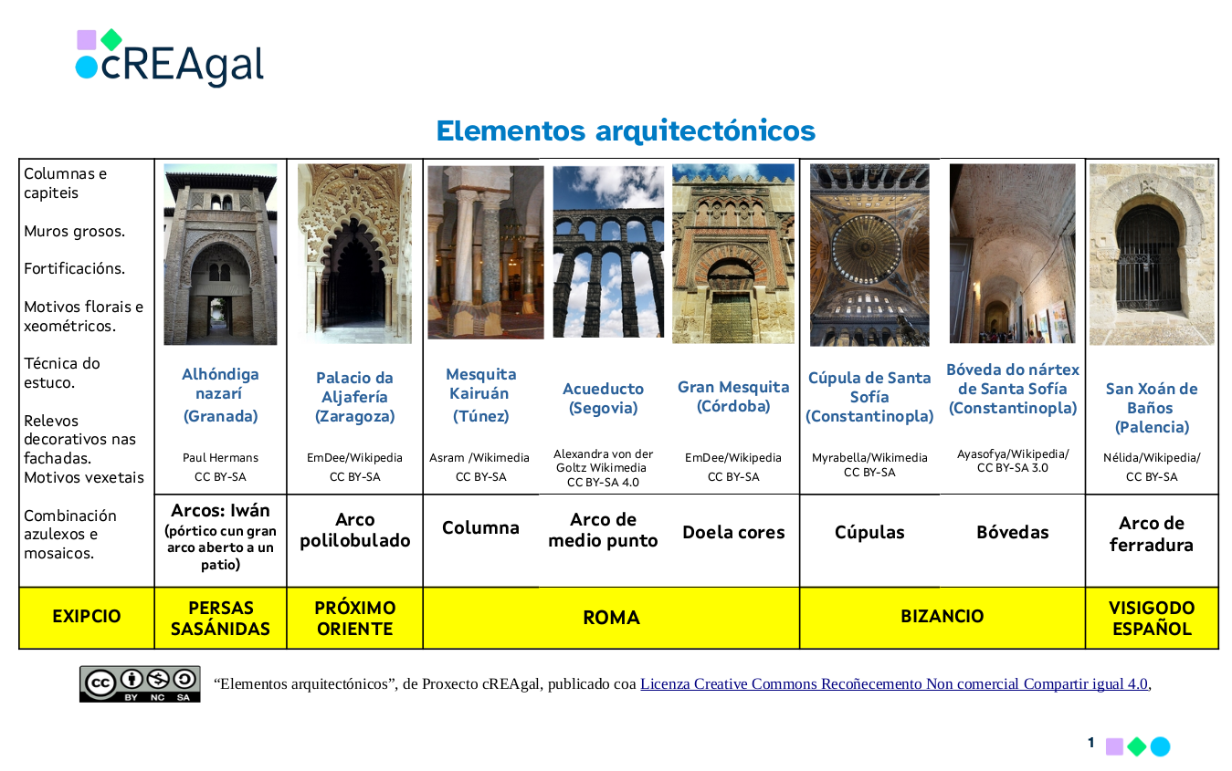 5.- Cubertas: As máis habituais a dúas augas, con artesoados de madeira; bóvedas de crucería e cúpulas (galonadas, de mocárabes...)