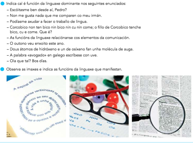 - c) Que funcións da linguaxe podes advertir na charla? Cal é a dominante?