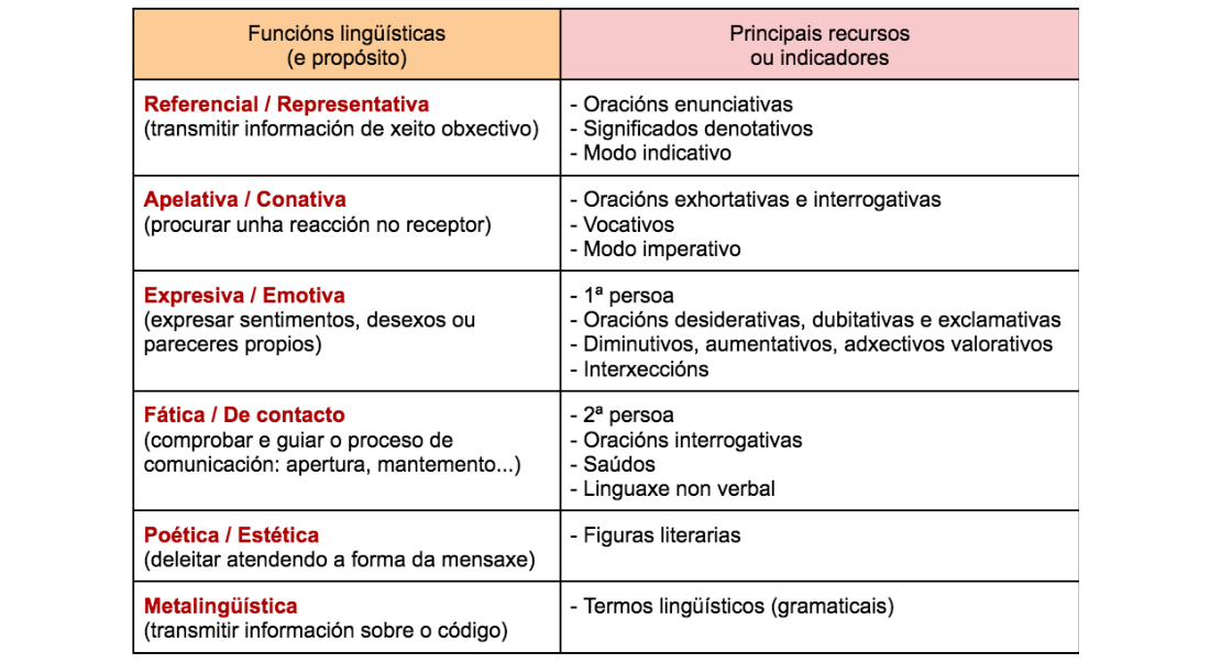 1. A conexión entre os elementos da comunicación e as funcións da linguaxe.