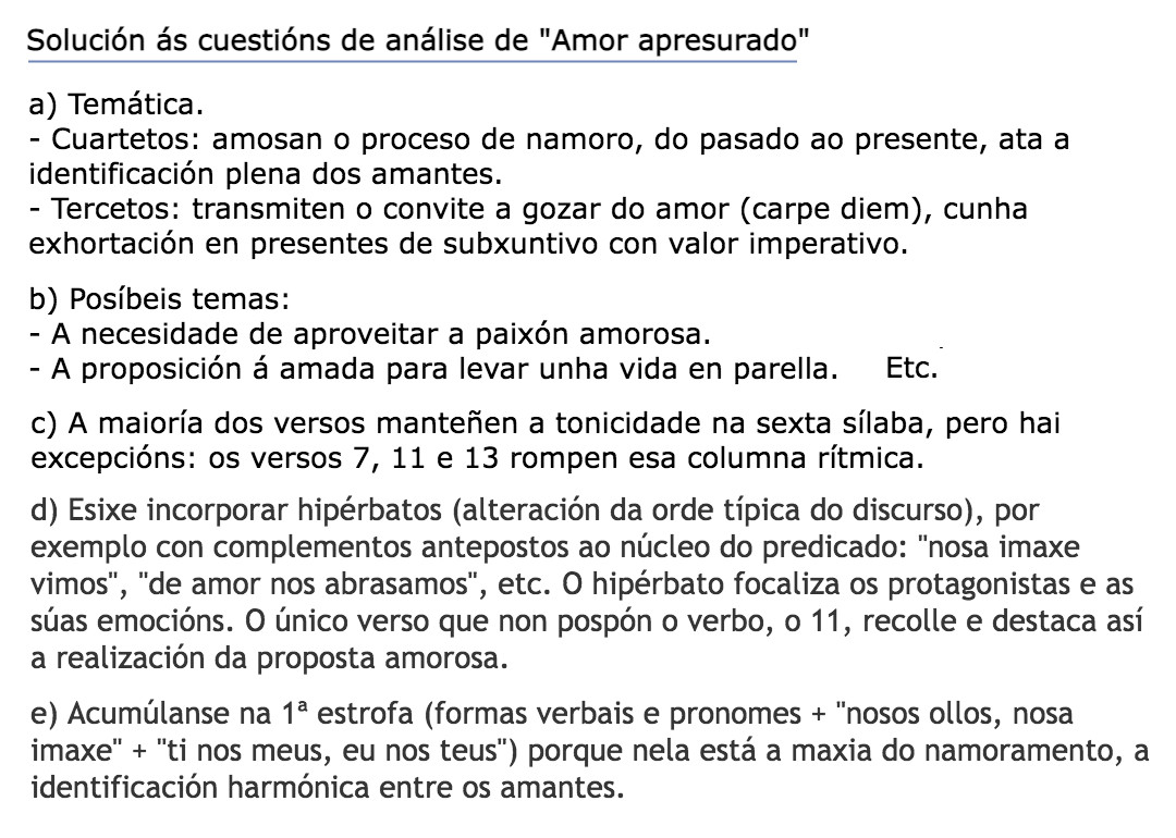 - Dentro da súa poesía intimista ten especial valor o soneto “Amor apresurado”, con presenza do Carpe diem.