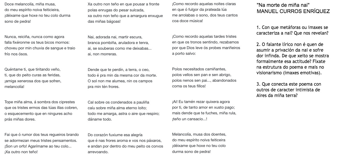 1. Curros Enríquez: "Na morte de miña nai" [sol]