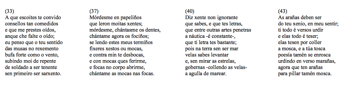 1. Identifica e comenta os recursos satíricos (xogos de palabras, diloxía, equívoco, ironía, paronomasia...) destes exemplos de 50 décimas...