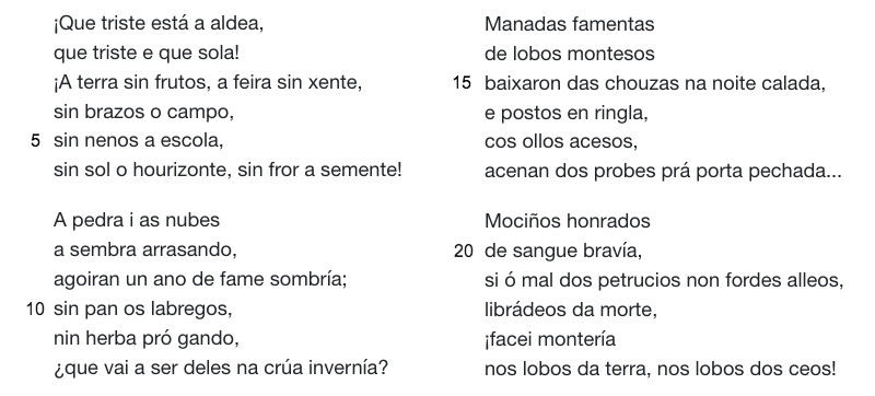 - Cédeselle a voz a falantes líricos populares, de xeito que o pobo acada verdadeiro protagonismo; dignifícase Galicia e a sociedade precapitalista maltratada.