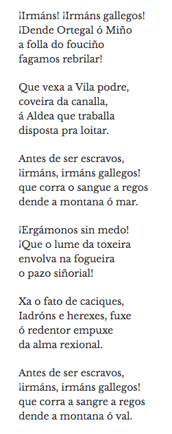 - Nalgúns textos ("Castellanos de Castilla", "A gaita gallega") defende Galicia ante o centralismo.