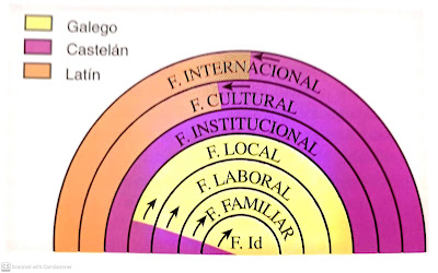 1. Identifica as linguas presentes na sociedade galega do século XIX e completa o comentario da gráfica de distribución das funcións.