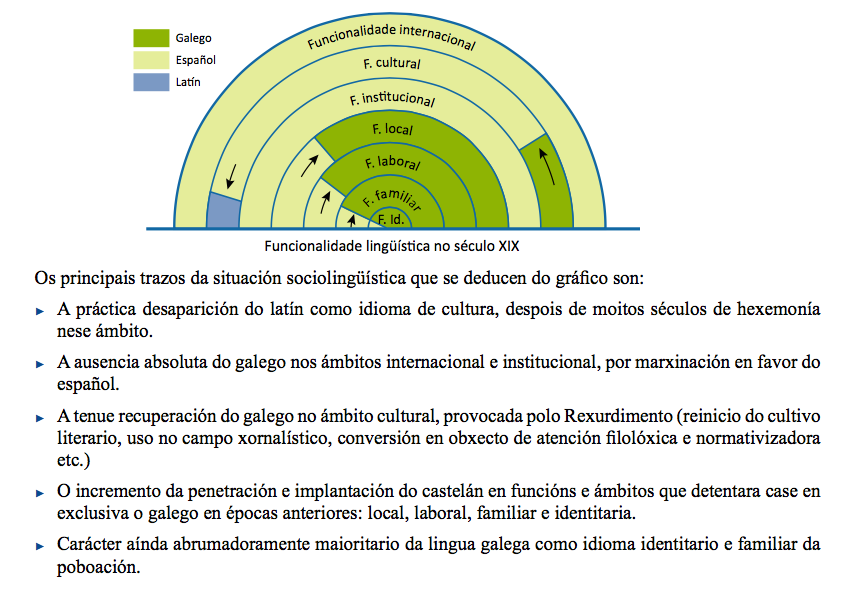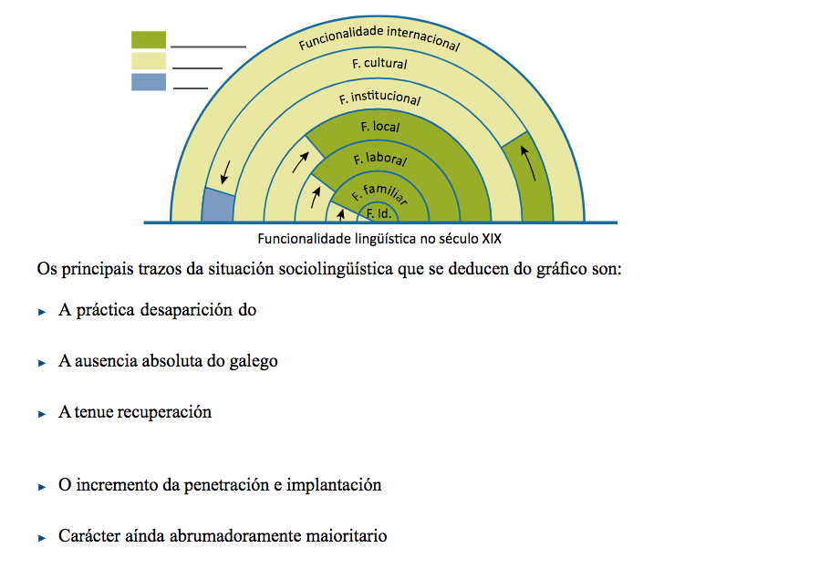 2. Comentade a funcionalidade lingüística do galego nesta altura -representada no seguinte gráfico. Considerade, para iso, os feitos expostos no tema. [Pódese empregar este apoio centrado no XVIII]