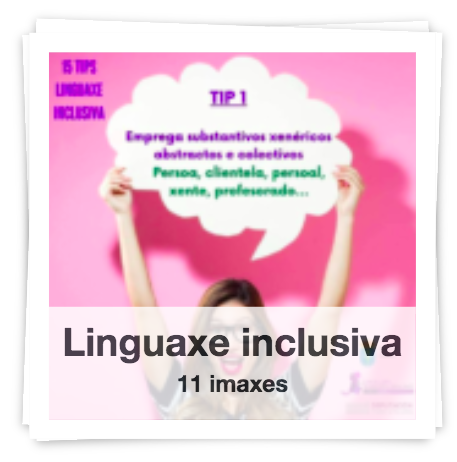 1. Principais procedementos da linguaxe inclusiva: uso de auténticos xenéricos, presenza do feminino e indeterminación do xénero. [Preme na imaxe. Ampliado e en documento, aquí]
