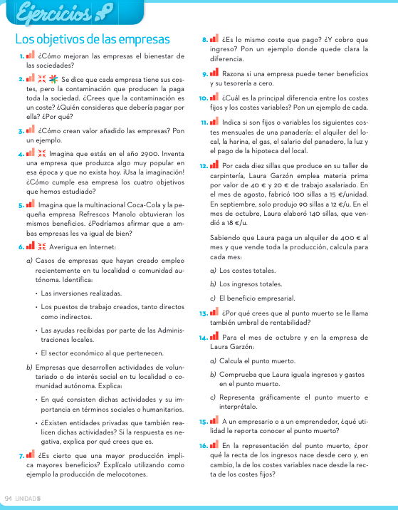 Exercicio beneficios, páxina 83: 3; 94: 11