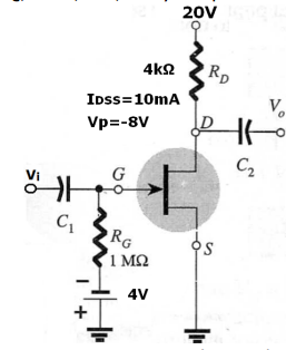 Calcular o punto de traballo Q ( ID, VDS, VGS) de cada transistor. Ter en conta que Vp equivale a VGSoff e que para os cálculos hai que ignorar os condensadores.