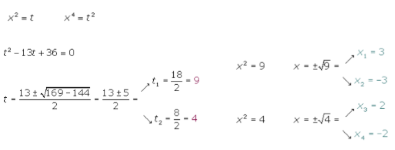 Ejemplo: resuelve la siguiente ecuación: x4-13 x2+36=0