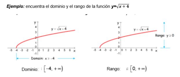 Para calcular el dominio de una función, se observa la gráfica, o se seguirán los pasos del siguiente apartado de esta lección.
