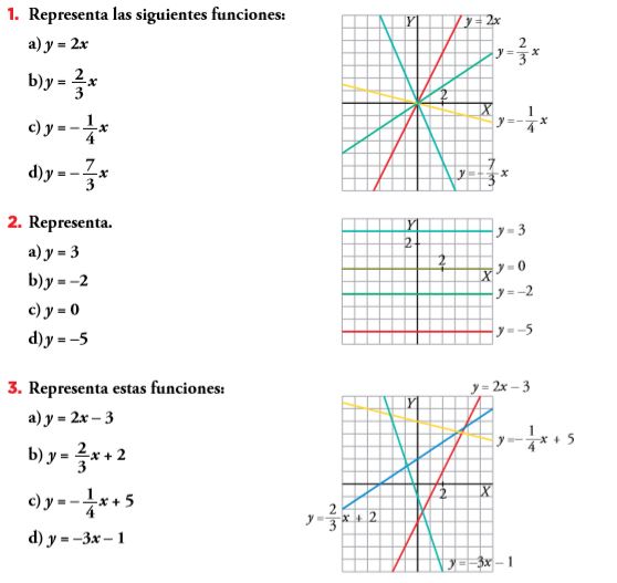 Realiza los siguientes ejercicios sin tabla de valores. Solamente teniendo en cuenta la pendiente y la ordenada en el origen.