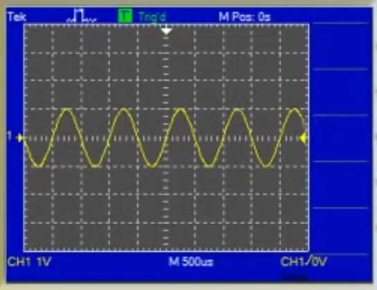 Polo tanto este sinal ten unha amplitude (valor de pico) de 1 V e un período de 2 x 500 us = 1 ms, é dicir unha frecuencia de 1 kHz.