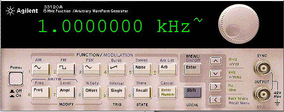 Agora configurar un xenerador de funcións para obter un sinal sinusoidal de 1 khz e unha amplitude que estea aproximadamente na metade do percorrido do mando.