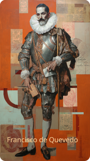 Francisco de Quevedo (1580-1645) fue uno de los autores más brillantes y complejos del Siglo de Oro español, máximo exponente del conceptismo. Su estilo se caracteriza por la densidad de ideas, el ingenio verbal, los juegos de palabras y una visión del mundo que oscila entre el pesimismo existencial y la sátira más mordaz.