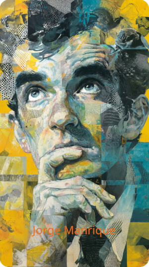 Jorge Manrique (1440-1479) fue un poeta y militar castellano del Prerrenacimiento, miembro de una de las familias más poderosas de la nobleza de la época. Su vida encarnó el ideal del caballero medieval: culto en las letras y valiente en las armas. Murió en combate durante la guerra civil por el trono de Castilla, defendiendo la causa de Isabel la Católica.