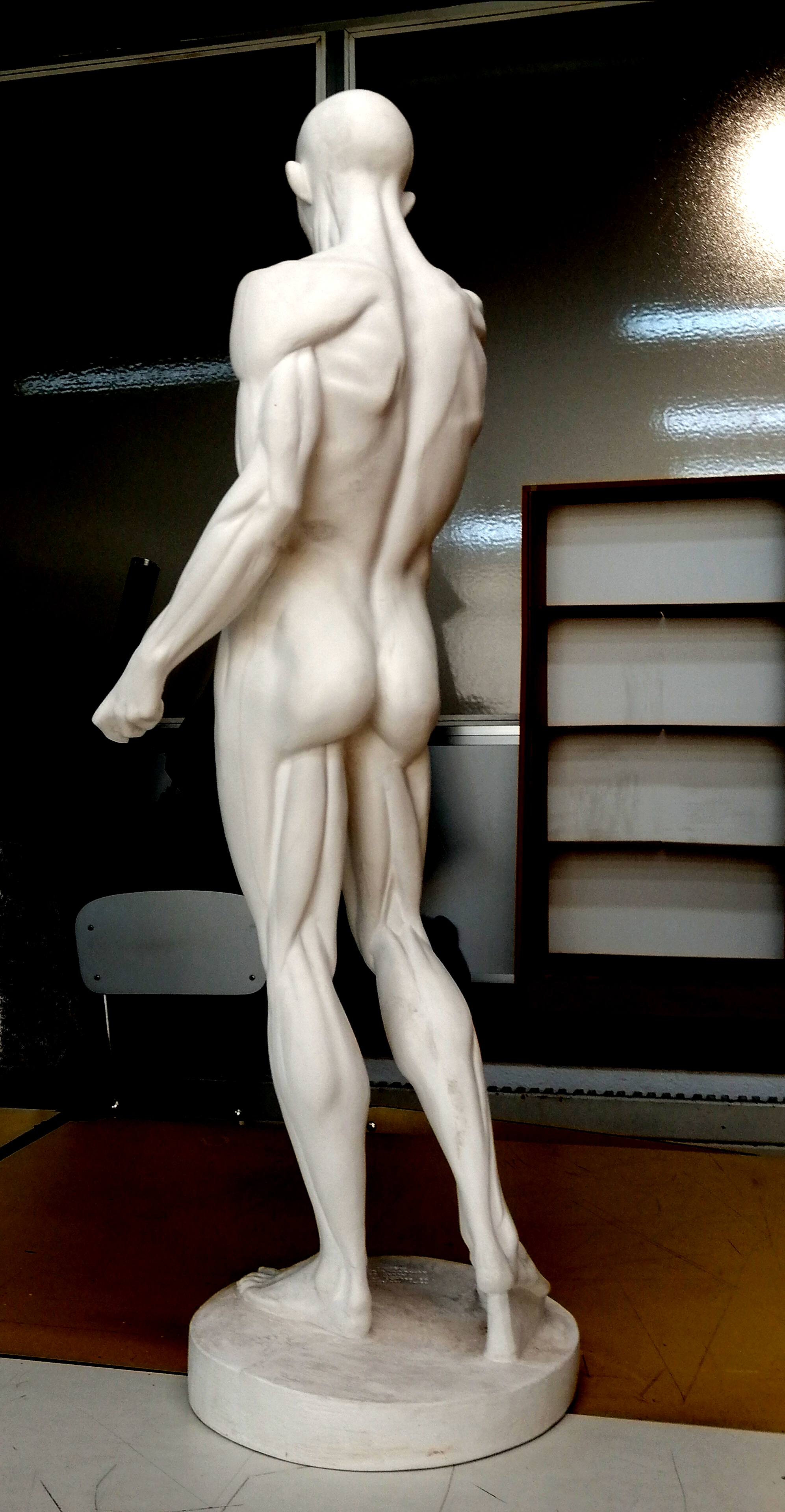 En tamaño DIN A-3 debuxamos unha vista do modelo a lápis reproducindo a musculatura e respectando as proporcións. As sombras deben estar máis en función da definición dos músculos que a representación do volume da escaiola.