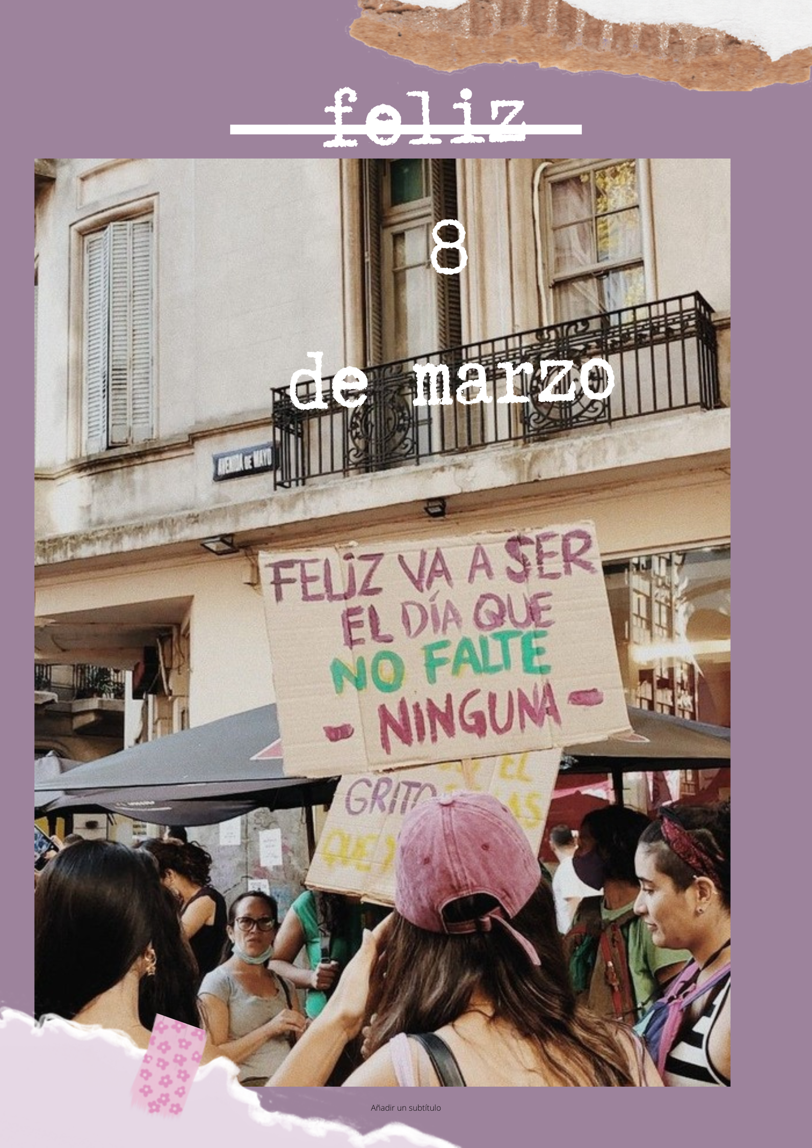 • Decoración da entrada do instituto con bandeiras de distintos países e carteis con lemas feministas en varios idiomas.