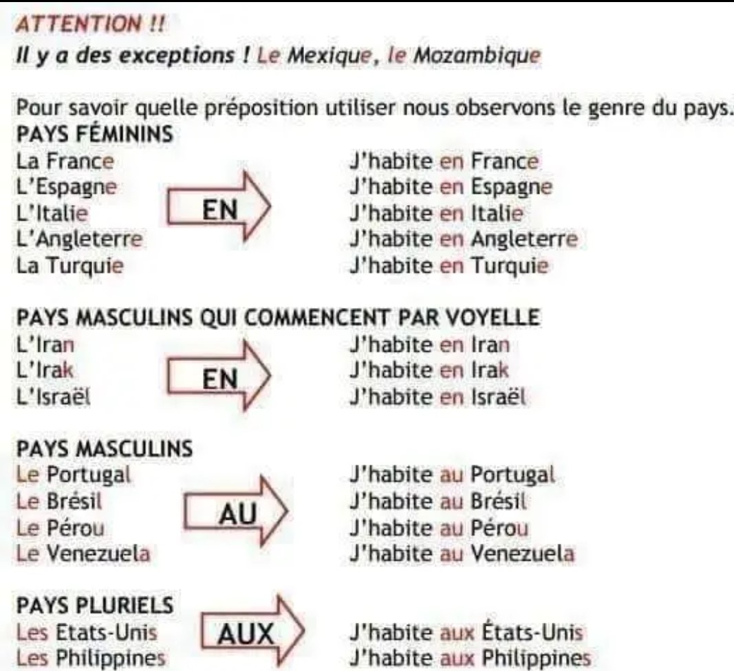 PAYS AU FÉMININ (la France, l’Espagne, l’Allemagne, l’Italie, l’Argentine, la Russie,...)