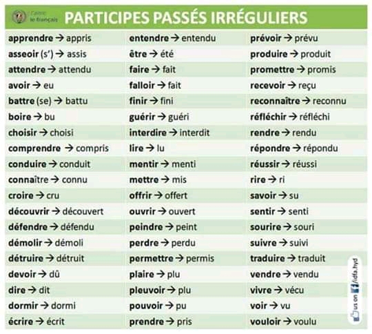 VENIR (présent) + DE + infinitif: Je viens de faire les devoirs / Tu viens de chanter une chanson / Elle vient de manger...