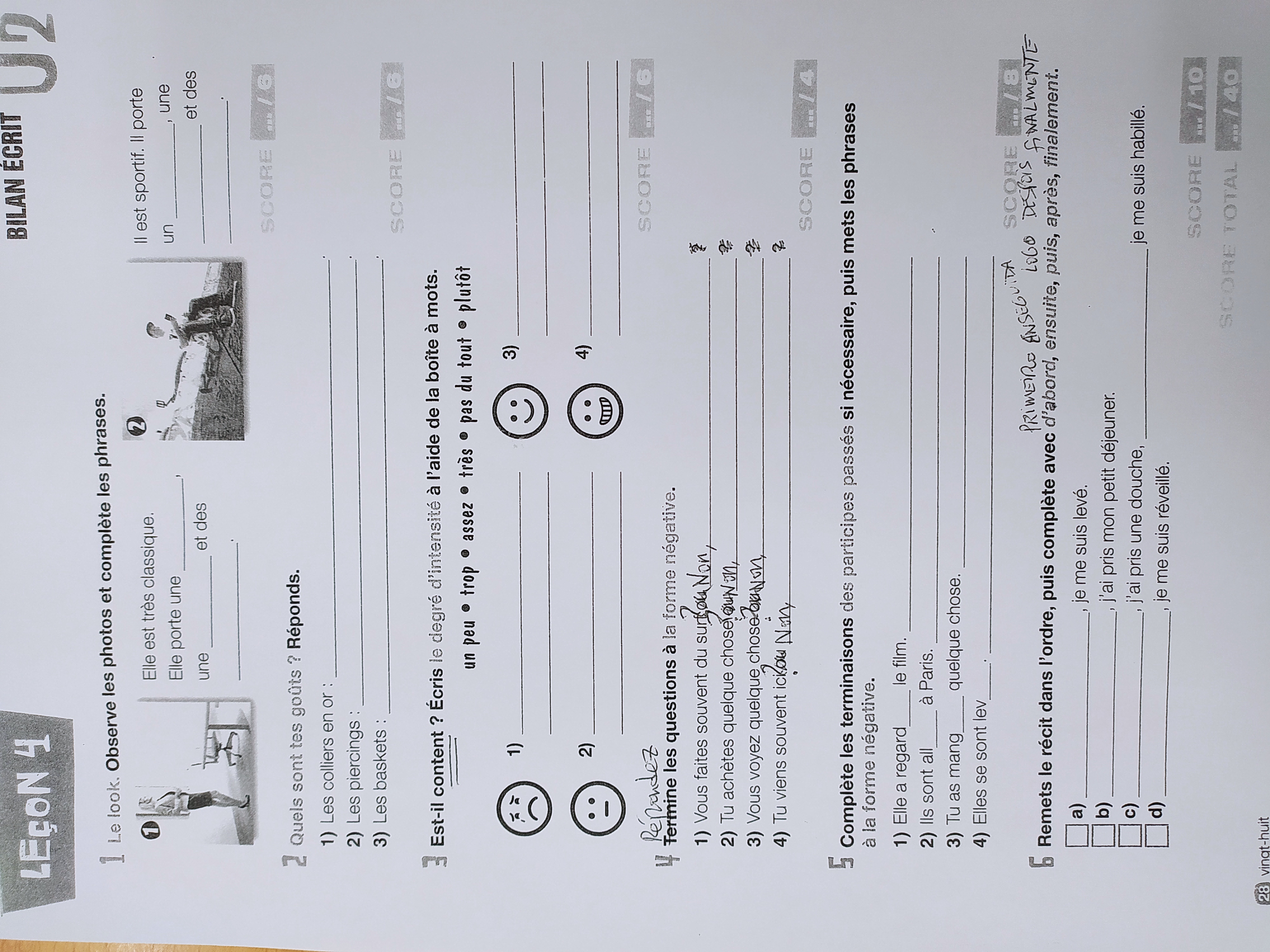 Le lundi je fais du théâtre; le mercredi et le vendredi je joue de la guitare. Le week-end je joue au basket. Je ne fais pas de natation parce que je n'aime pas la piscine.