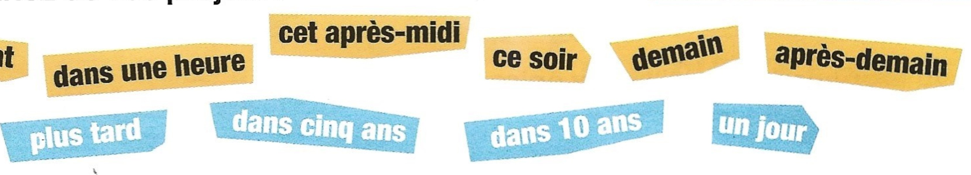 Plus tard / Dans une heure / Demain / Après-demain / Un jour / La semaine prochaine / Mardi prochain / L'année prochaine / Quand je serai grand / ...