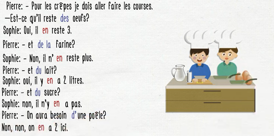 Tu vas au restaurant? Oui, j’y vais / Non, je n’y vais pas.
