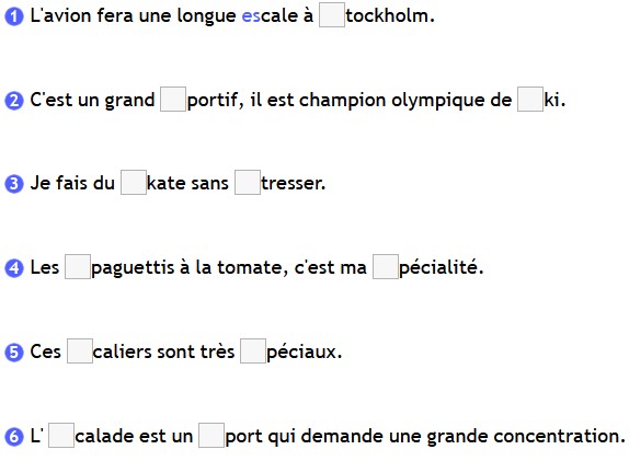Unité 6: les sons /SP/ /ST/ /SK/ exercice compléter