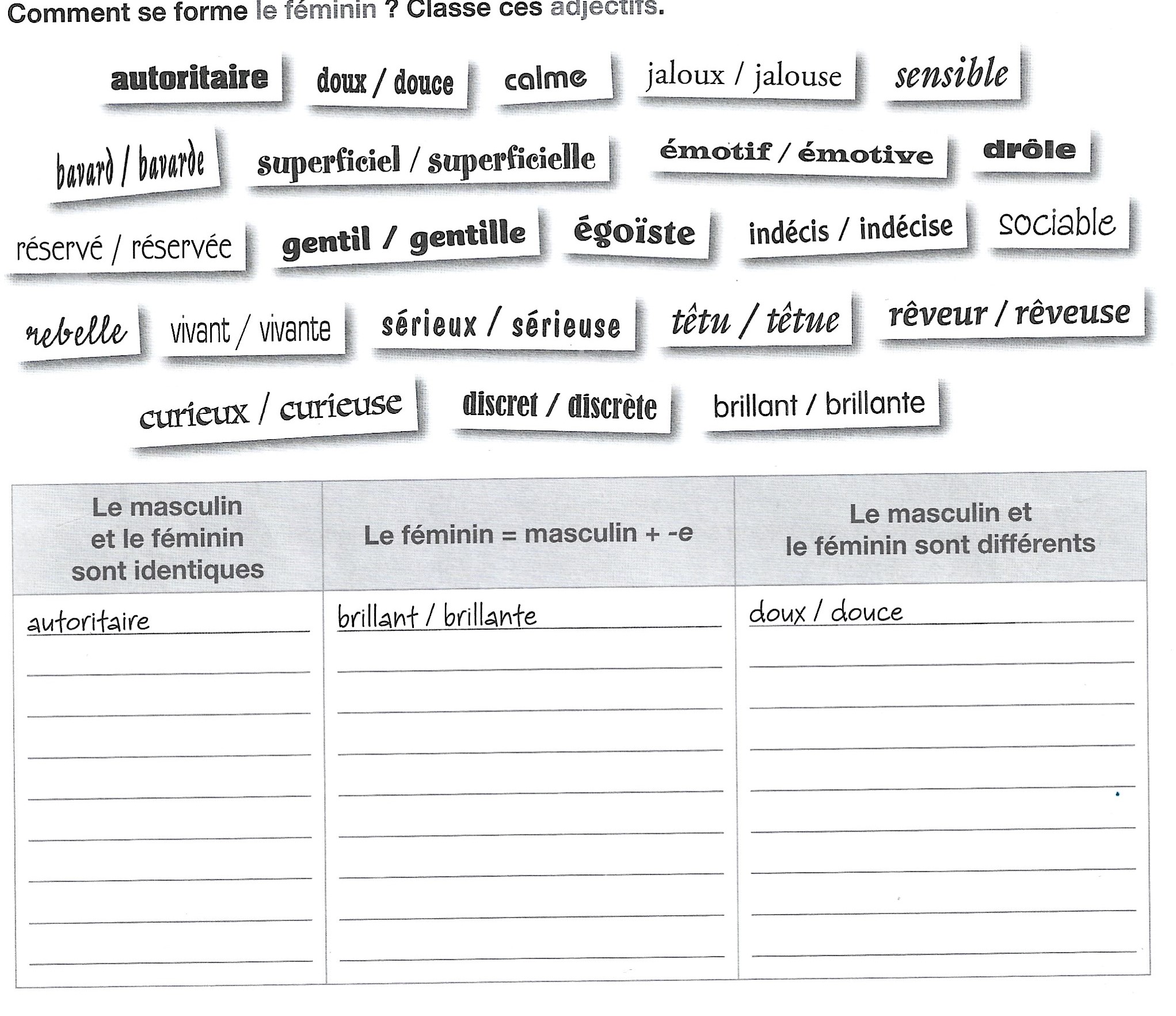 Activité grille adjectifs