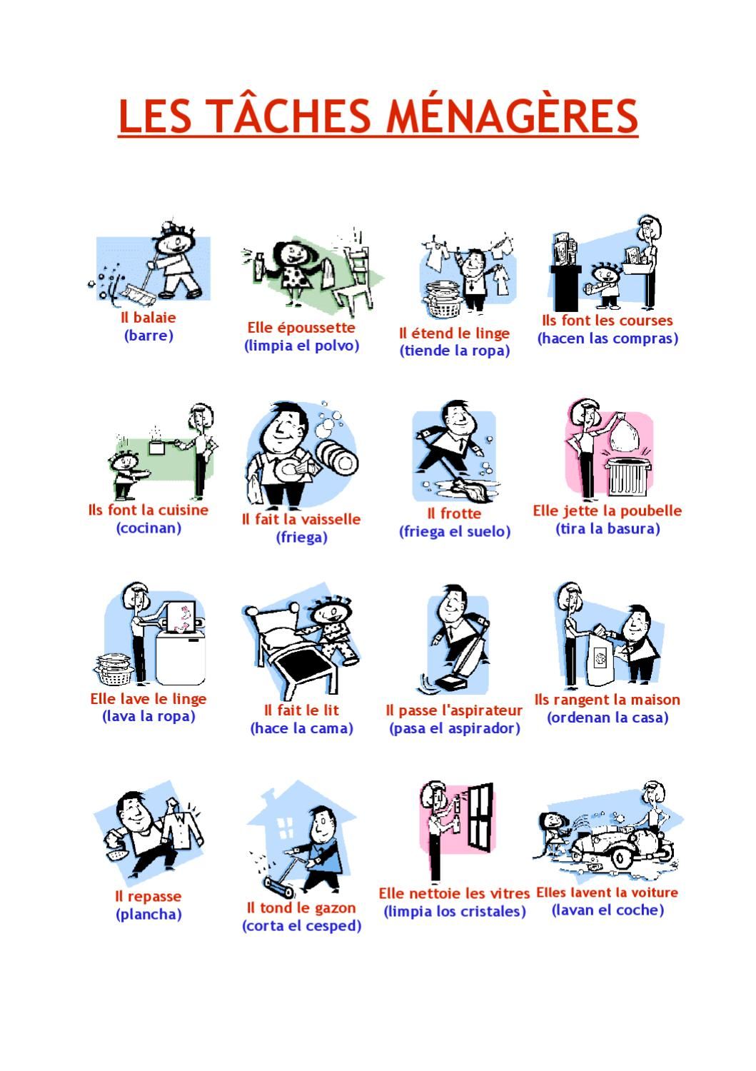 Tâches ménagères (fiche verbes au présent)