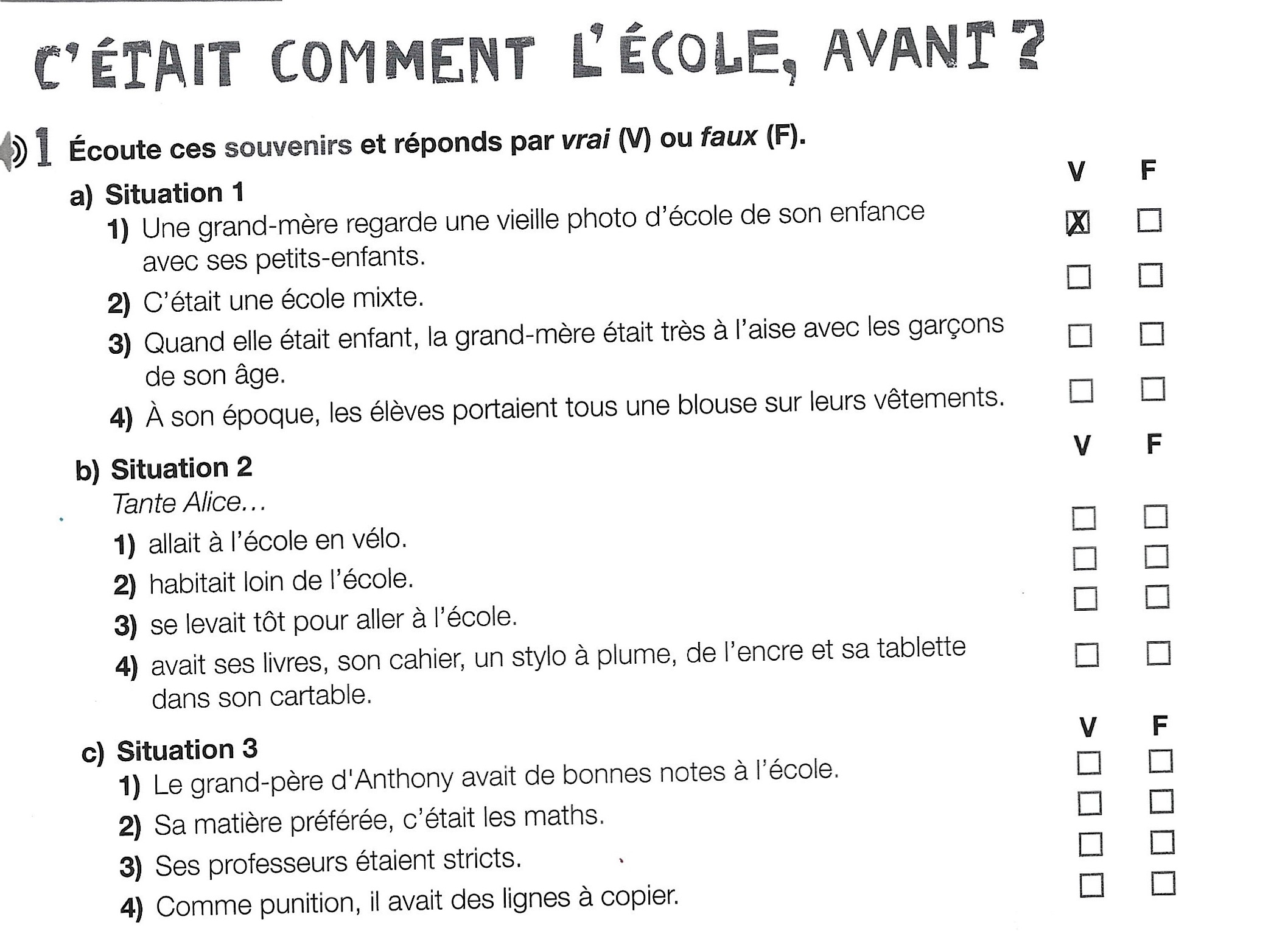 Souvenirs d'enfance (exercice vrai ou faux)