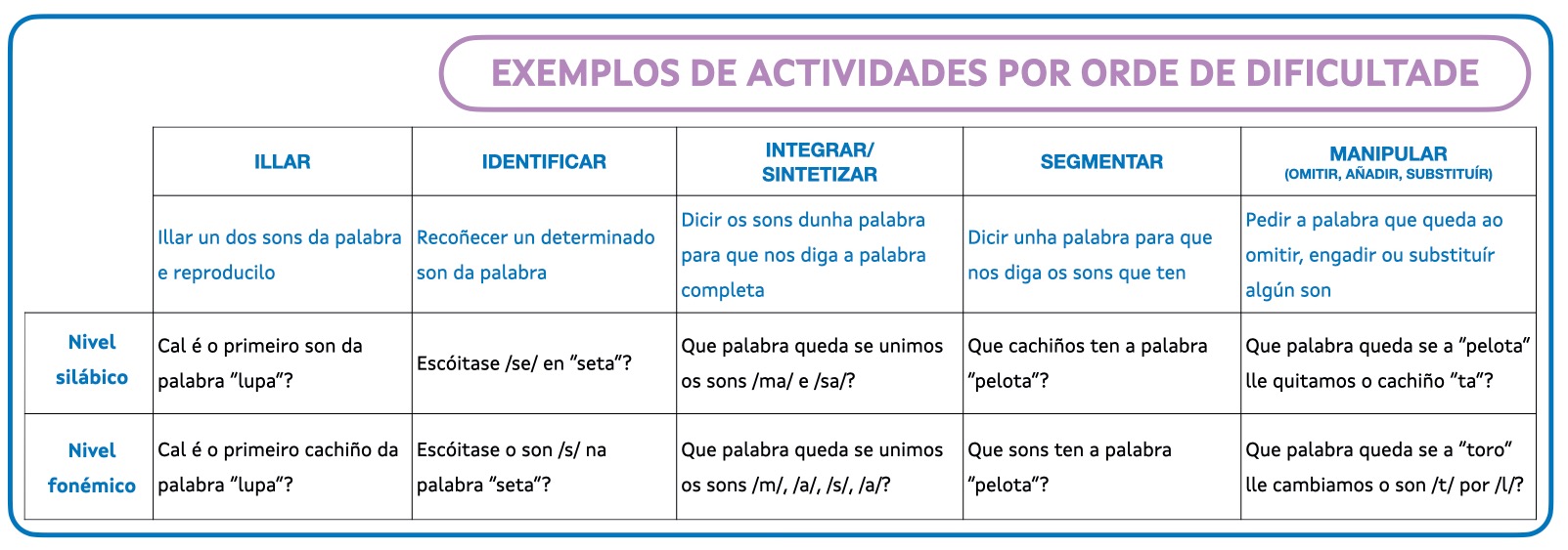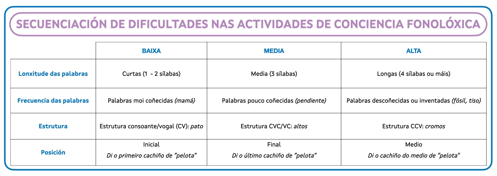 - Aumentar gradualmente a complexidade das palabras ao longo do ano.