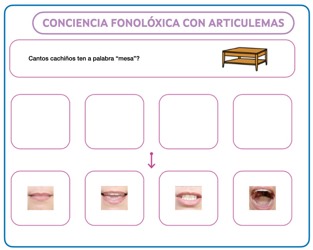 - Pódese guiar o alumnado para representar a palabra usando figuras, monicreques ou outros obxectos.