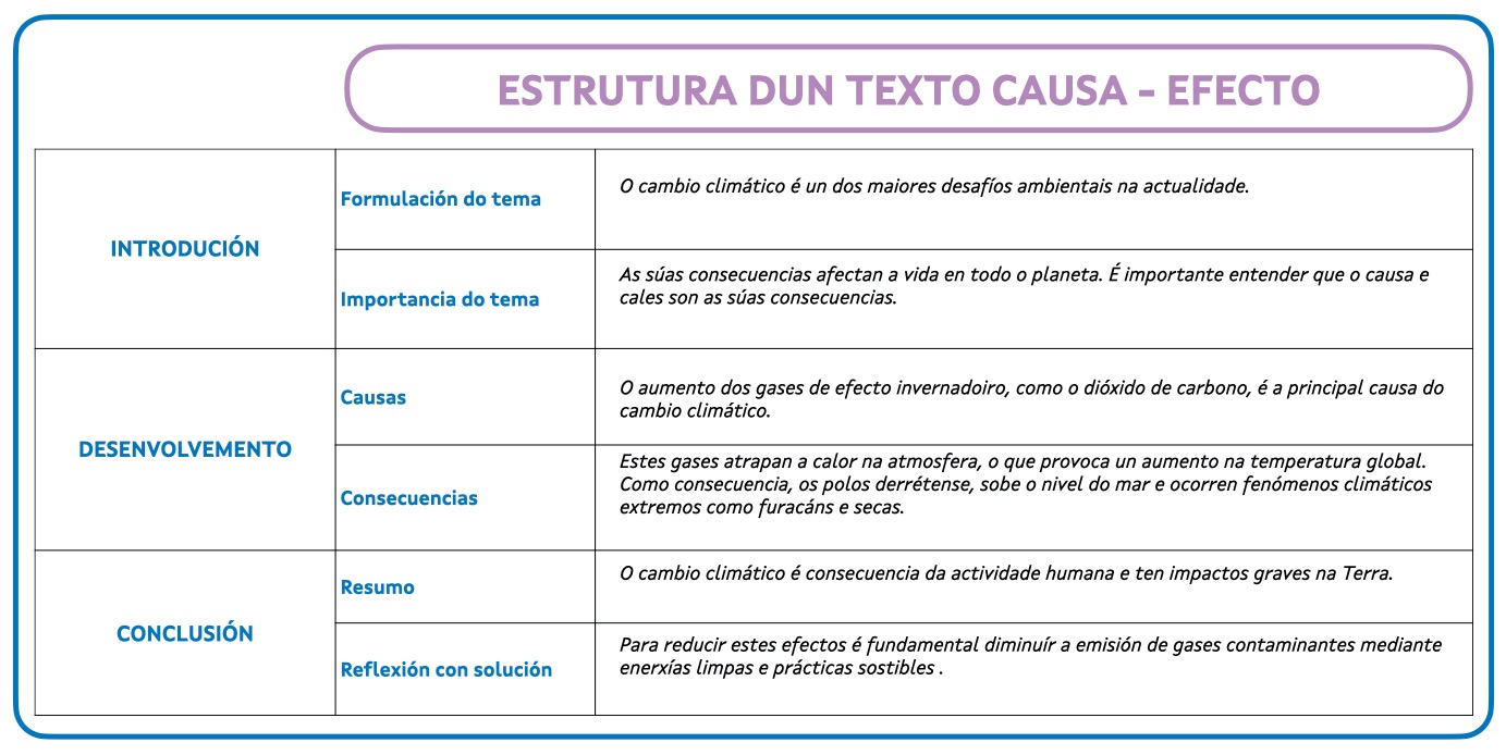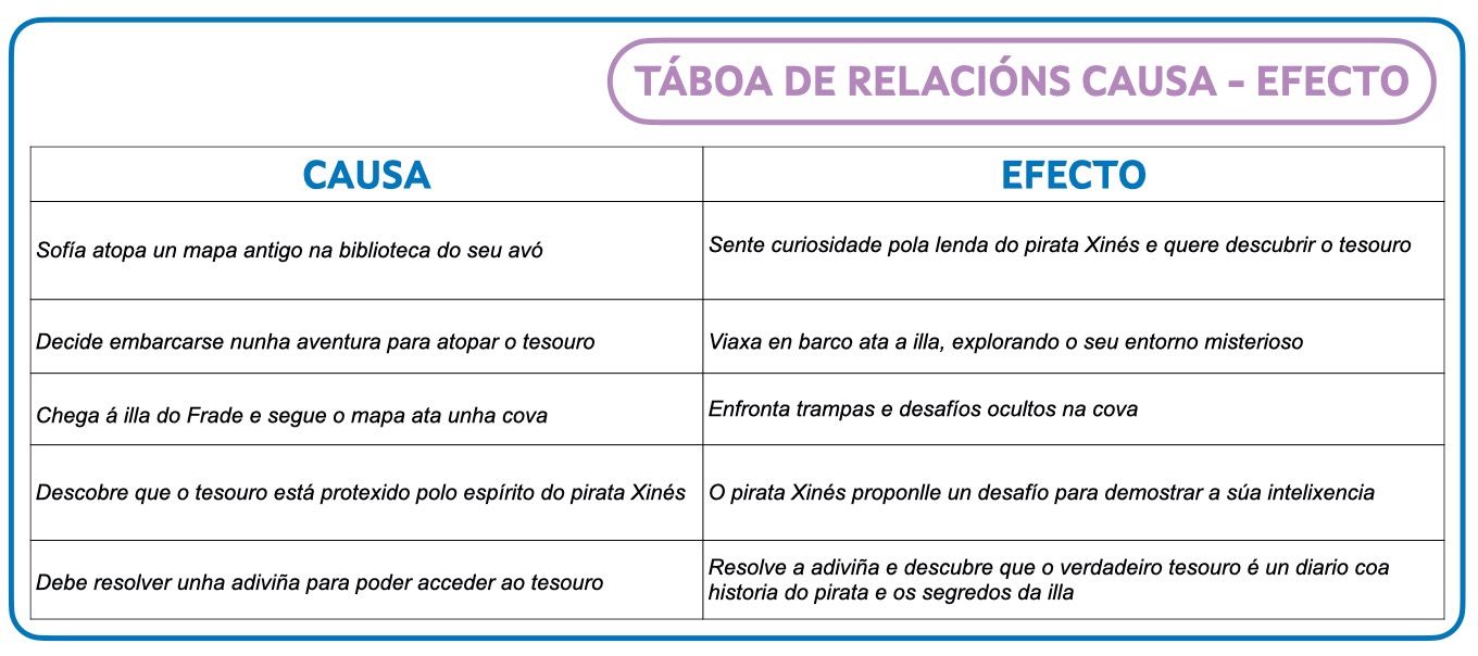 - as táboas con relacións de causa e efecto,