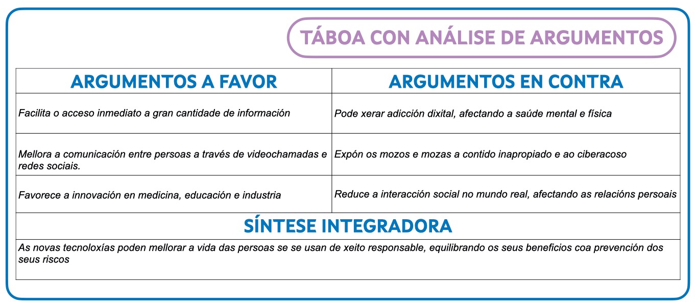 - o cadro de análise de argumentos.