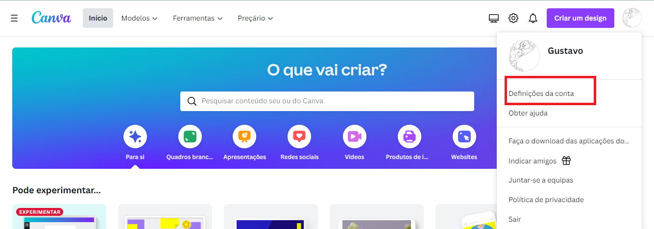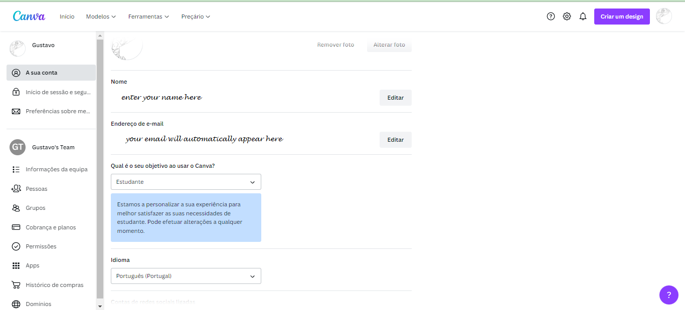 After you are logged in, go to Settings and configure, name, language and all the information you consider important: