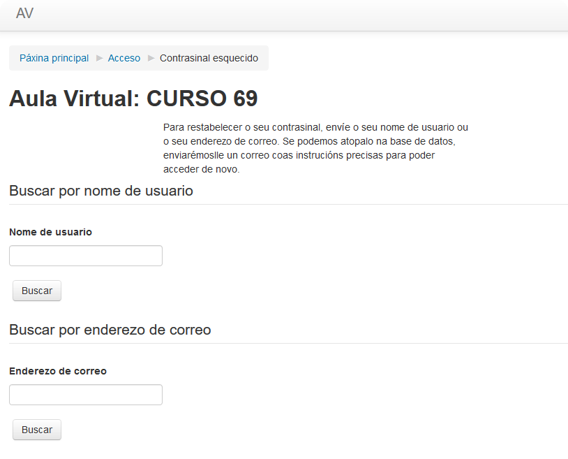 Se vostede é usuario da aula virtual pero non ten asociado ningún correo electrónico ten que poñerse en contacto co seu centro educativo para restablecer o seu contrasinal.