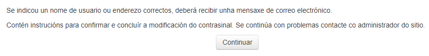 - Recibirás un e-mail no correo coas instrucións precisas para poder acceder de novo.